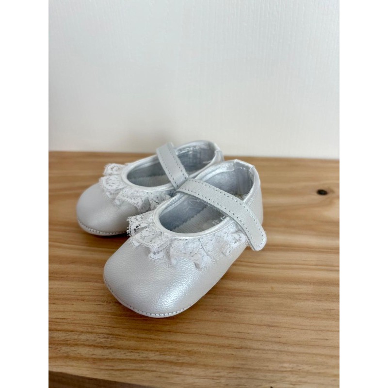 Pepito bebé lazo blandito todo piel nacarada con cierre lazo de raso y sin suela