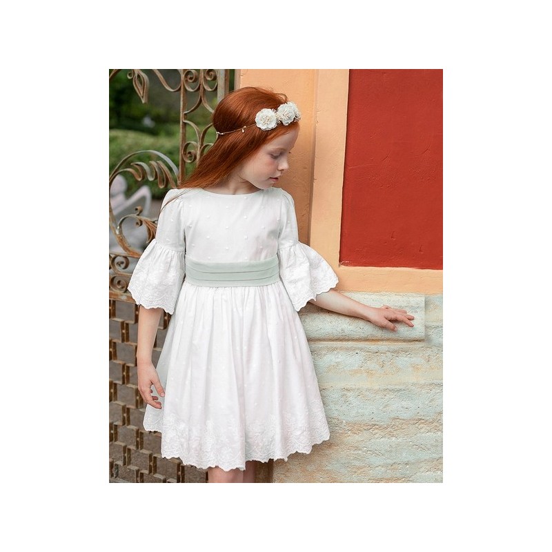 vestido bordado lazada verde agua