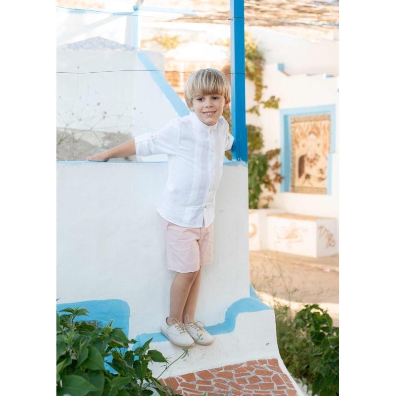 modelo 401441-401451 compuesto por camisa de cuello mao de manga larga y pantalón chino con cinturilla ajustable.