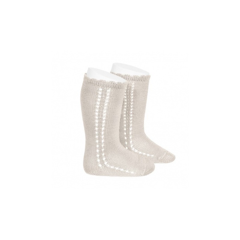calcetines altos perlé con calado (304 lino)