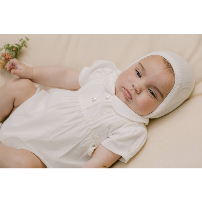 Clásico Pelele para bautizo, confeccionado en organza , esta fabricado artesanalmente en España, se puede confeccionar con manga larga, manga corta rizada o manga sisa, además de poder añadir capota de manera opcional. Disponible por encargo durante todo el año.